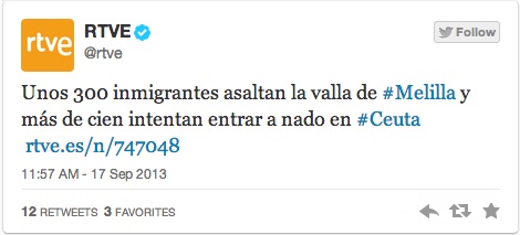 El pasado viernes, RTVE nos sorprendía en su edición del mediodía del Telediario con este reportaje. No dura un minuto y en él se explican las «maravillosas condiciones» de las que disponen los inmigrantes en los Centros de Internamiento para Extranjeros (CIE). Para ejemplificarlo, se van hasta el de Ceuta (que allí se llama CETI) donde, entre idílicas imágenes de la vida cotidiana dentro del centro, se ve un torpe delegado del Gobierno que no es capaz de justificar su existencia sin poner mil excusas y cara de Europa.
