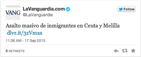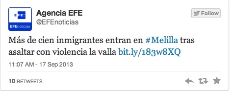 Hoy, como tantos otros días, la injusticia y el atentado a los Derechos Humanos se vuelve a hacer patente en las infames vallas de Ceuta y Melilla. Nuestro medios de comunicación, con su lenguaje belicista, lo siguen justificando criminalizando a los desposeídos. Si queréis más información (digna) sobre este suceso de actualidad, os invito a pinchar en este enlace.