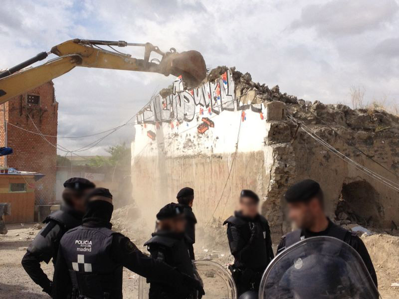 En total, con la información con la que cuento en este momento, han derribado nueve viviendas, han movido el barracón que servía de aula de apoyo escolar, han tirado el muro y han aplastado el templo que esta misma semana habían terminado de construir los vecinos de El Gallinero. Sí, han derribado un templo. Por segunda vez en menos de medio año. La Ana Botella de misa diaria que mañana comulgará de rodillas y en la boca, ha derribado un templo. Un peligrosísimo templo. Qué desolación…